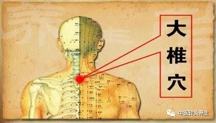 大椎穴位于颈根后,第七颈椎棘突下凹陷中。简单的说,将头稍微往前垂下,不动肩膀只左右动头颈部,会发现有的突起会动,有的突起不动,会动的突起为颈椎,取穴时只要找会动突起的最下方即是。