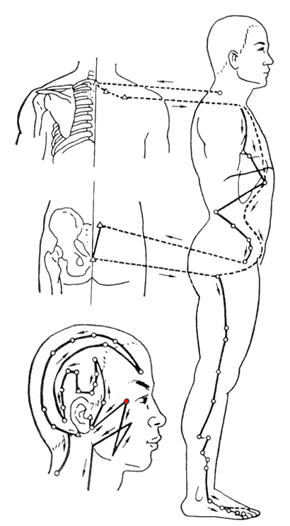 其支者,从耳后入耳中,出走耳前,至目锐眦后。